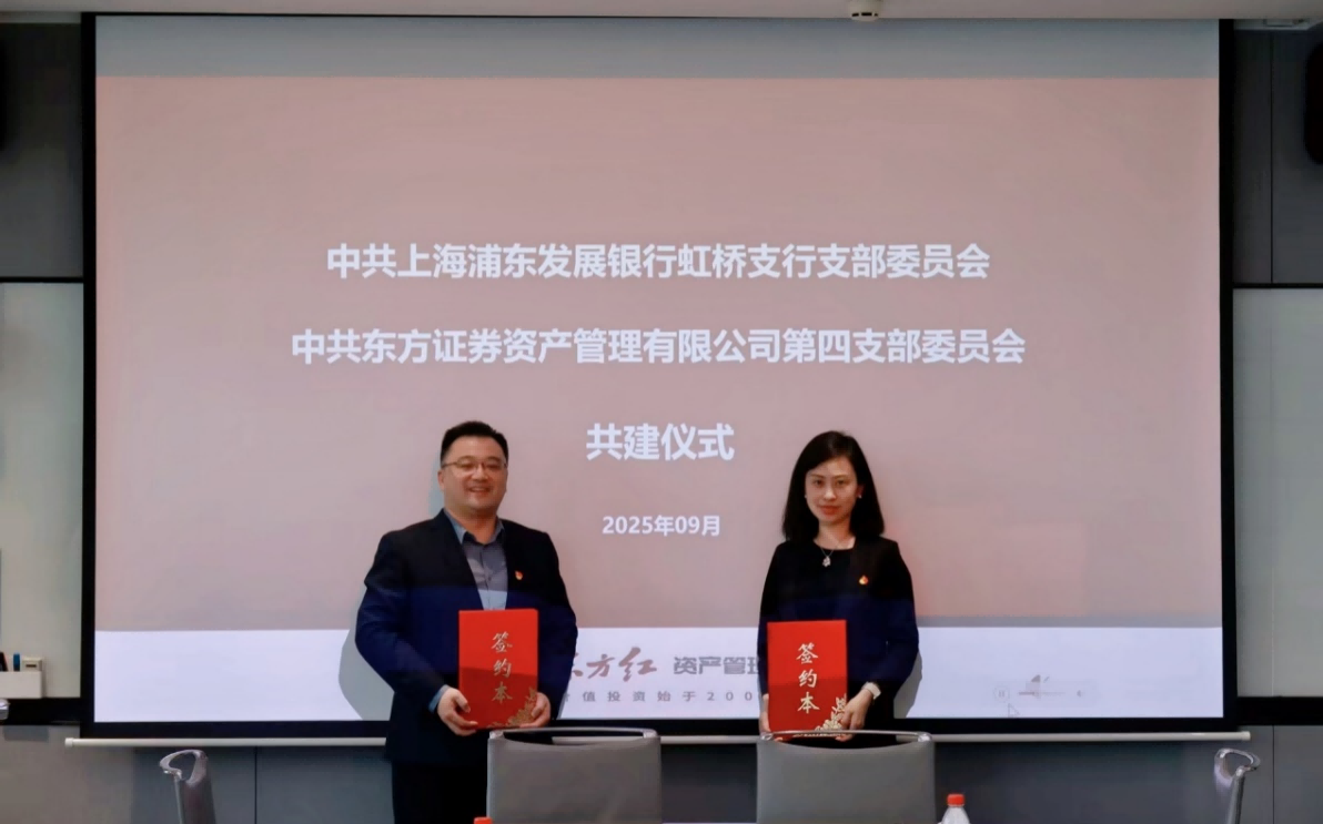 近日,为进一步加强基层党组织建设,促进党建与业务深度融合,东方红资产管理第四党支部与浦发银行上海虹桥支行党支部签署党建共建协议,以党建共建为纽带,在组织互促、党员互动、优势互补等方面深入合作、资源共享,实现共同发展。