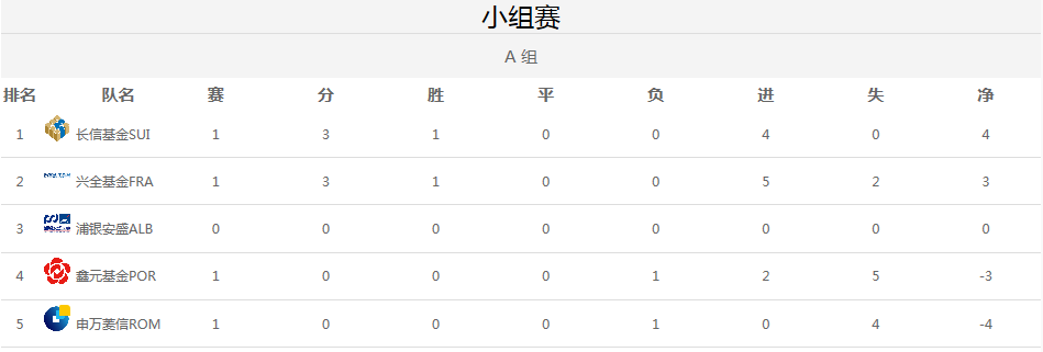 经过9场共计7小时的激烈角逐,小组赛首轮赛况如下: