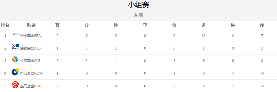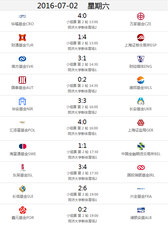 2016公会“兴全基金杯”足球赛第二轮小组赛赛况
