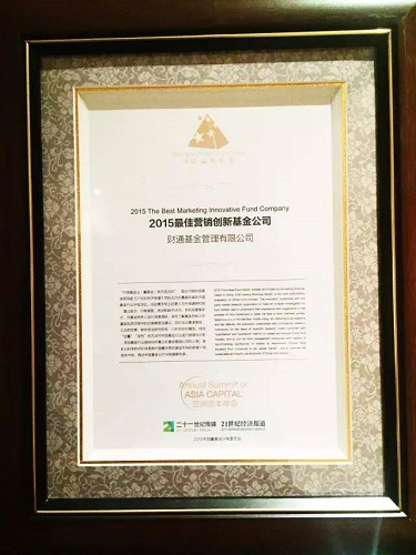 财通基金荣摘“2015最佳营销创新基金公司”!