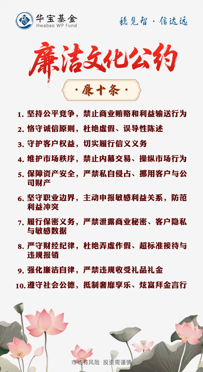 下阶段,华宝基金还将推出《廉小贝系列漫画——廉洁导航图》,通过更富趣味性的形式解析廉洁要点;同时,将把廉洁、诚信元素系统性地融入品牌传播与业务营销材料,在直播、短视频等新媒体渠道中巧妙植入廉洁文化内容,持续推动廉洁文化、诚信文化与品牌建设的深度融合,不断提升公司的公信力与行业竞争力,为公司在高质量发展道路上行稳致远提供坚实的文化支撑。